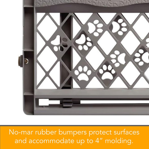 - PERFECT FOR MODERN HOMES: This portable petgate features rubber bumpers that protect your walls and are positioned higher than other gates to accommodate up to 4" molding.