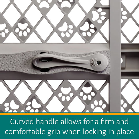 - WORRY-FREE SAFETY: Keep your pet contained and your home safe with the MyPet Paws Portable Petgate. It's made of strong, durable plastic, features adorable paw print accents, and comes in an appealing Light Gray finish that fits flawlessly with any decor.