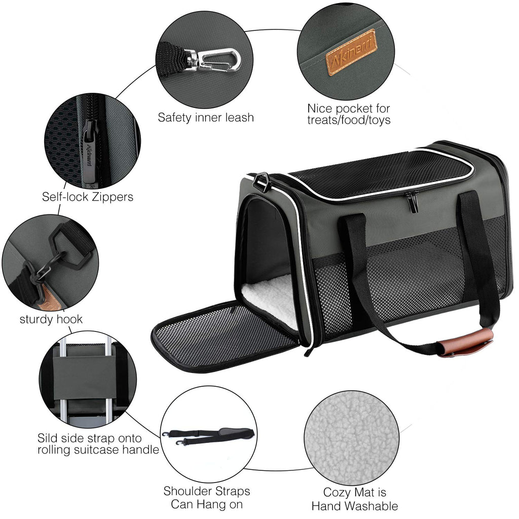 • Travel carrier for medium cats and puppy: AIRLINE APPROVED;can be secured in car seat and fastened on luggage