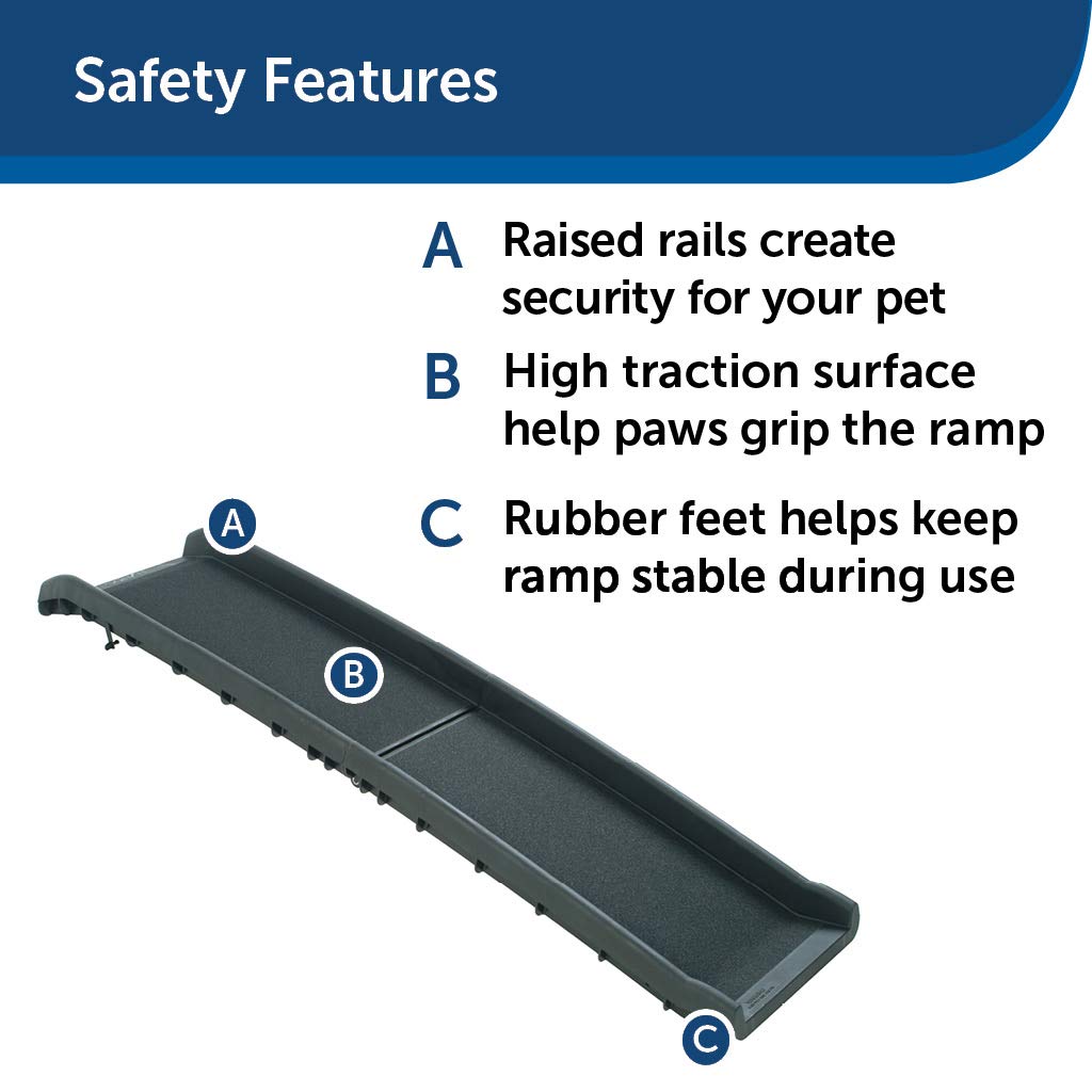 - NO SLIPPING: Unique and soft non-slip rubberized walking surface. Good slip resistance on rainy days. Keep your furry pets from slipping or falling when walking on the ramp.