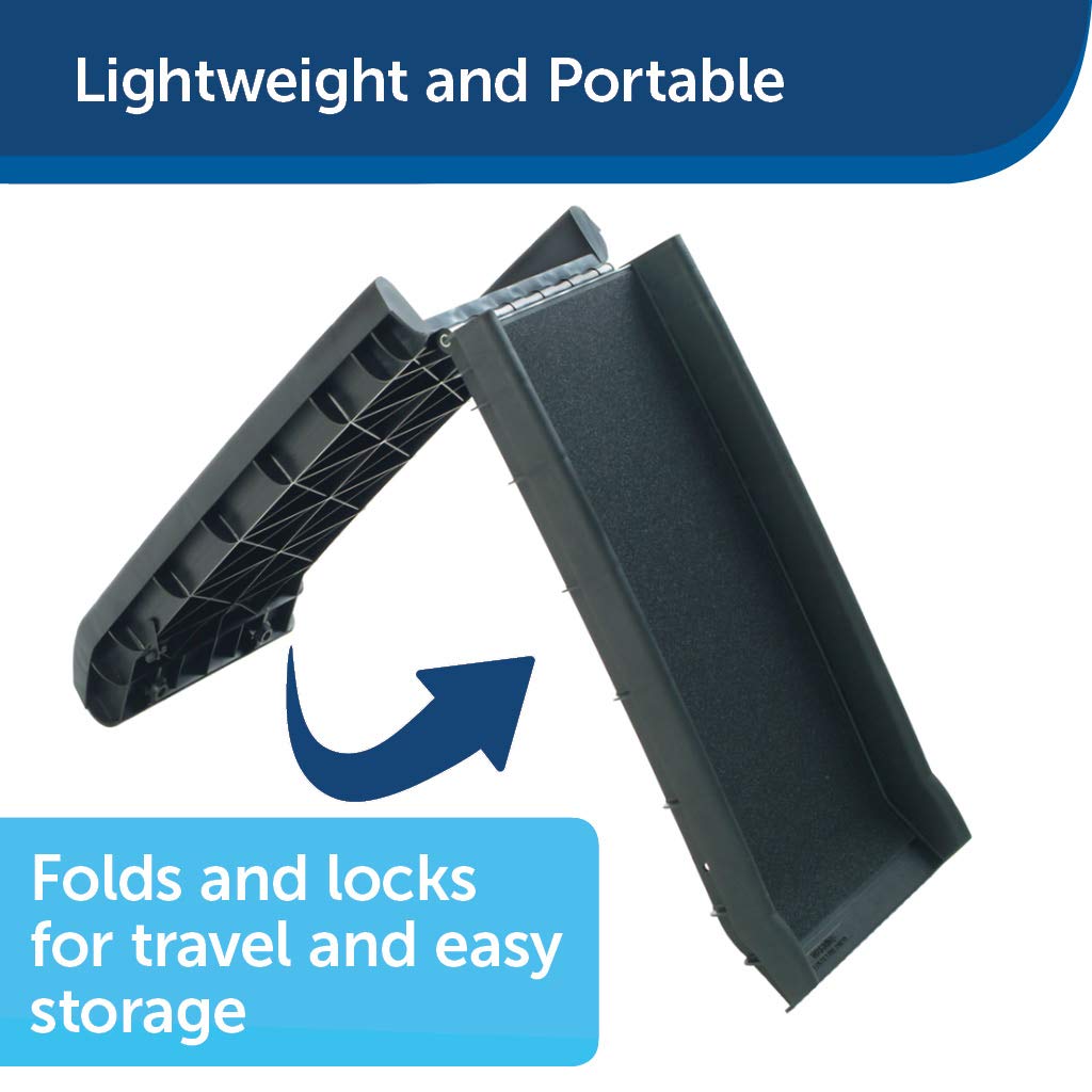 - SIMPLE TO STORE: Ramp easily folds in half and locks with a safety latch to let you conveniently store it in your vehicle.