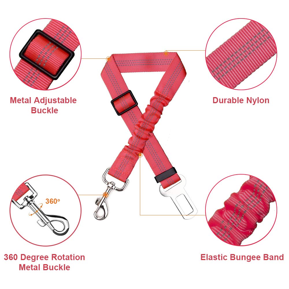 2 Packs Adjustable Length Pet Dog Cat car seat Belt - Pink