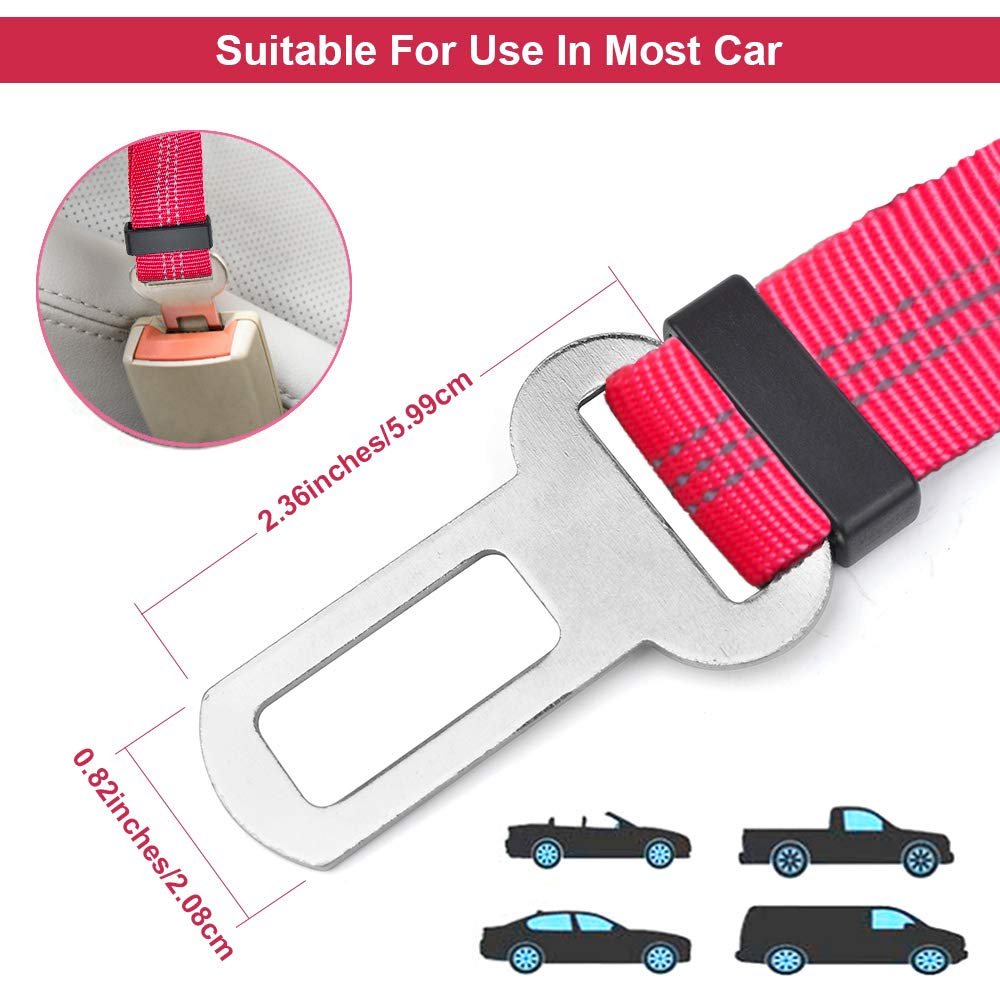 • Universal Fitting --- This dog seat belt for cars designed with a width of 0.82 inches belt clip, which can be plugged into most vehicles seat belt receptacles.