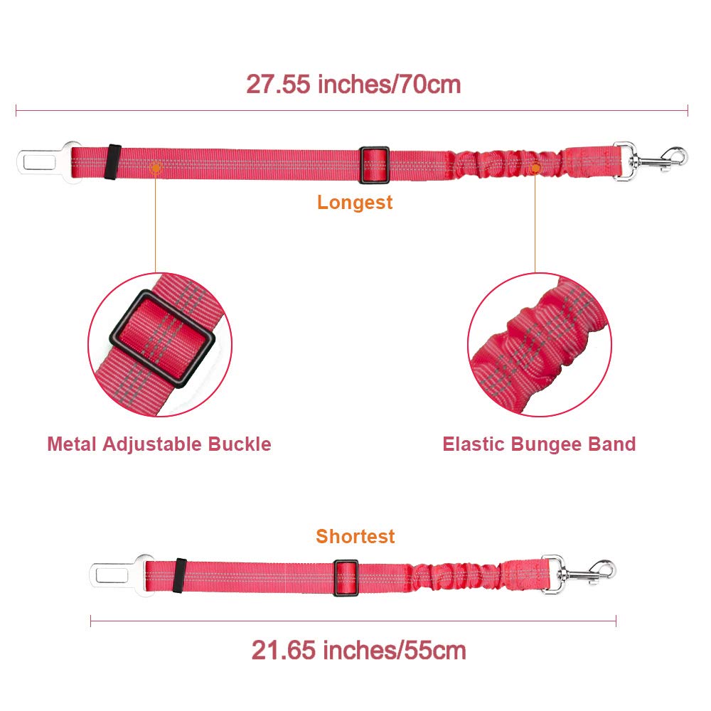 • Adjustable Length --- With button on the strap and the elastic bungee inside, this seat belt can be adjusted from 20.87 inches to 29.13 inches and can be stretched to 30.71 inches for the maximum length. Good adjustable length so the dogs can get themselves comfy without restricting themselves.