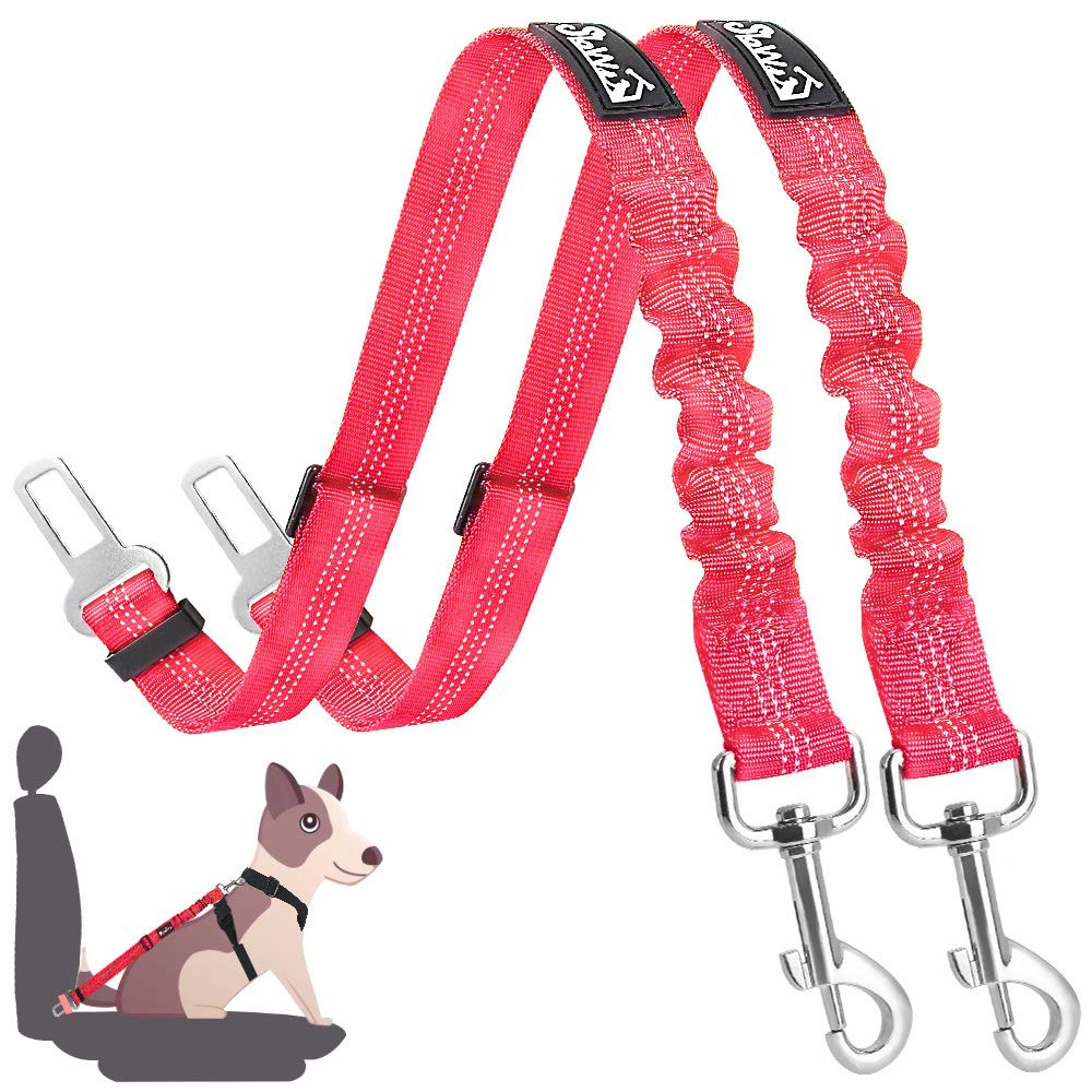 Dog Seat Belt, 2 Pack Adjustable Pet Car Seatbelt - Red